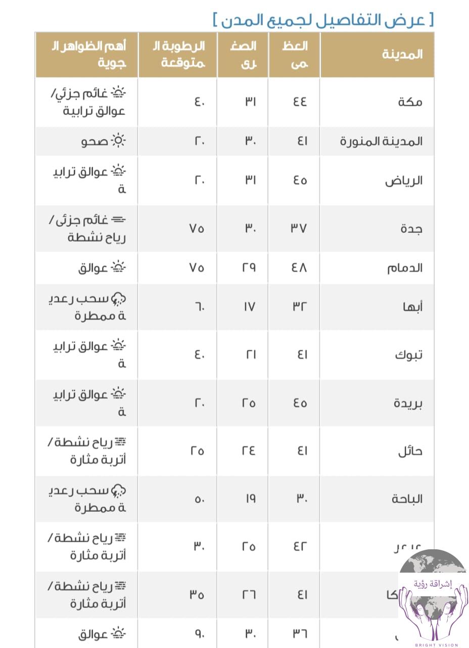 الرياح ستكون نشطة على مناطق واسعة من المملكة، خاصة السواحل الغربية وأجزاء من الشمالية الشرقية، بسرعة تصل إلى 45 كم/س، مما قد يؤدي إلى إثارة الأتربة والغبار.