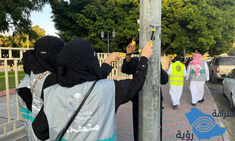 بمشاركة متطوعين ومتطوعات أمانة الطائف تنفذ مبادرة لإزالة الملصقات العشوائية من أعمدة الانارة