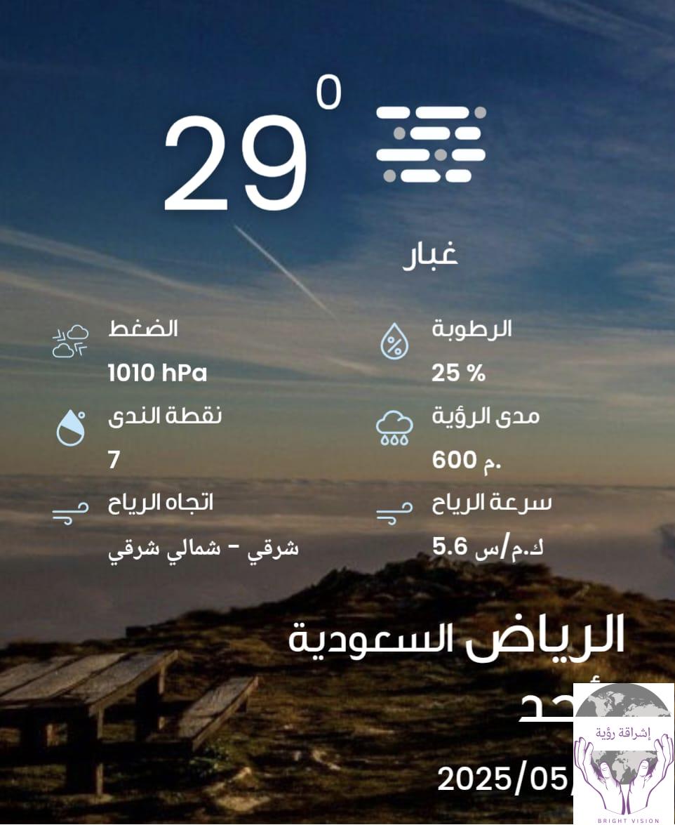 المنطقة الشرقية: تشهد مناطق مثل الدمام والأحساء طقسًا حارًا، مع درجات حرارة مرتفعة ورطوبة منخفضة، واحتمالية هطول أمطار رعدية متفرقة، ورياح نشطة مثيرة للأتربة والغبار .
