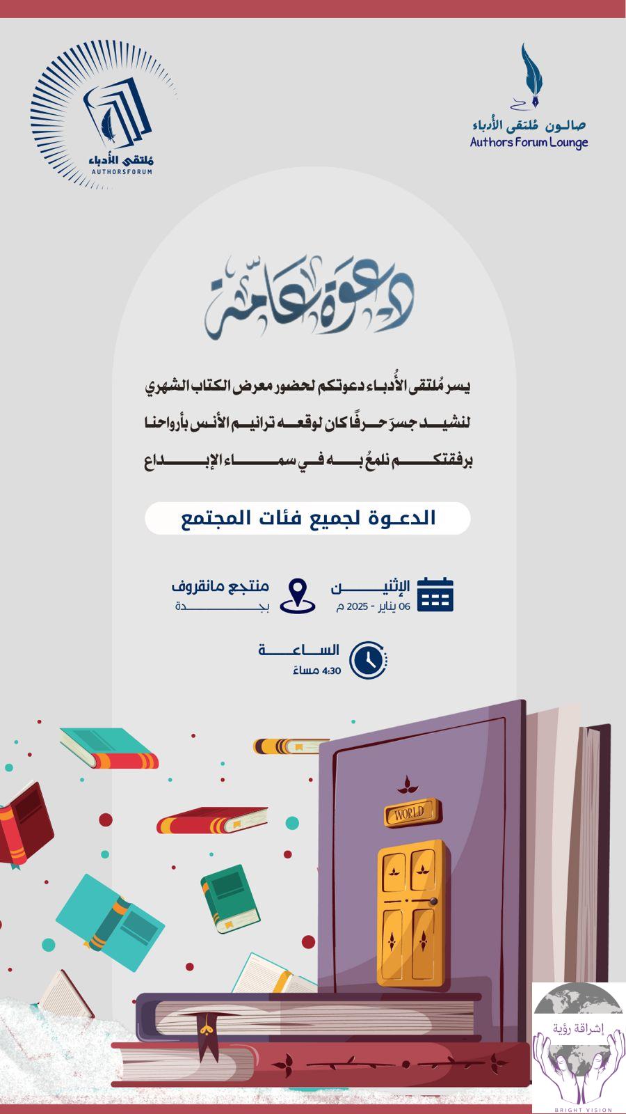 في حدث فريد من نوعه يطلق ملتقى الأدباء اليوم (الاثنين) الرابعة والنصف عصرًا فعالية فن على الشاطئ التي تشمل ألوانًا ثقافية وفنية متنوعة تحت شعار “للفرح وجهين” نادي الشعراء وصالون ملتقى الأدباء بمنتجع مانقروف في جدة.